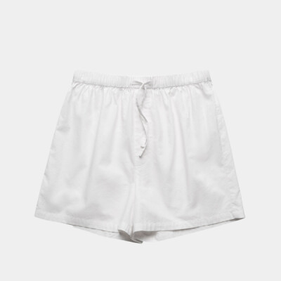 Construction: Elastic waist, mock fly stitching, self fabric draw cord